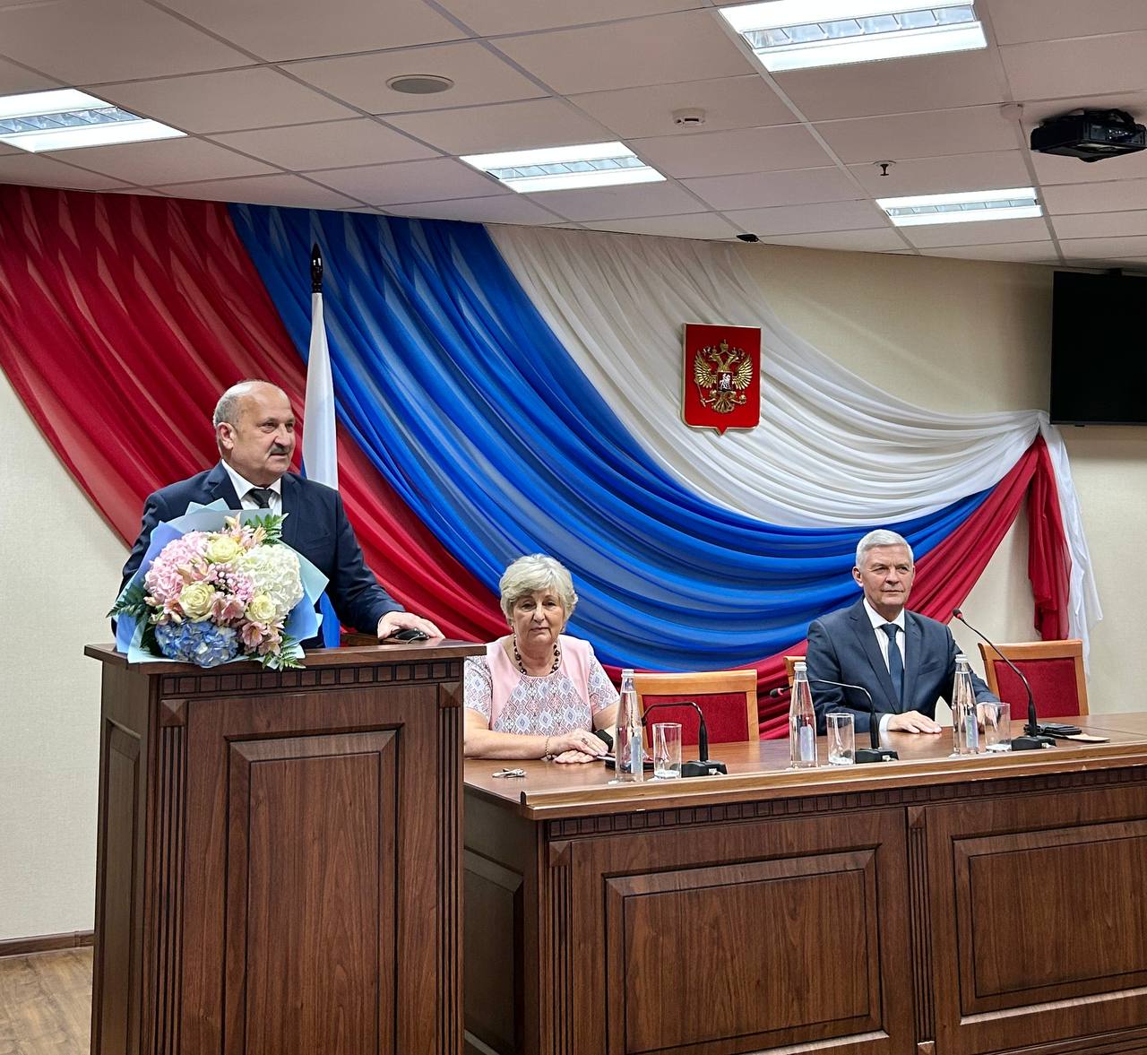 14.08.2025 в торжественной обстановке коллектив областного суда проводил на заслуженный отдых начальника финансово-бухгалтерского отдела Битюкову Татьяну Геннадьевну. Председатель суда Шишкин Сергей Константинович выразил искреннюю благодарность Татьяне Геннадьевне за многолетнюю плодотворную работу. Битюкова Т.Г. начала свой трудовой путь в качестве бухгалтера еще в 1983 году в Исполнительном комитете Владимирского областного совета народных депутатов. Во Владимирском областном суде работает с 2008 года. Общий стаж работы – более 42 лет. За период своей трудовой деятельности в областном суде Татьяна Геннадьевна была награждена знаками отличия Судебного департамента "За усердие" I и II степени. Кроме того, ее труд отмечен Почетной грамотой Владимирского областного суда, Благодарностью Совета судей Владимирской области и Администрации Владимирской области. Битюкова Т.Г. зарекомендовала себя как высококвалифицированный специалист, обладающий огромным опытом и заслуженным авторитетом среди коллег. В ответном слове Татьяна Геннадьевна, поблагодарив за внимание и добрые слова, пожелала всем здоровья, успехов в работе и всех благ. Также Сергей Константинович вручил ведомственную награду судье областного суда Бондаренко Елене Ивановне. Приказом Судебного департамента при Верховном Суде Российской Федерации №452-л/с от 10 апреля 2025 года за значительный личный вклад в развитие судебной системы, всестороннее содействие в укреплении и совершенствовании правосудия в Российской Федерации судья Бондаренко Е.И. награждена медалью «За трудовую доблесть». Сергей Константинович пожелал Елене Ивановне дальнейших достижений на профессиональном поприще. В мероприятии принял участие главный федеральный инспектор по Владимирской области Мамеев Сергей Станиславович, который вручил служебные удостоверения судьям, назначенным Указом Президента Российской Федерации от 9 июля 2025 г. №463: • Пруцковой Елене Алексеевне – заместителю председателя Ленинского районного суда г. Владимира, • Бабенковой Марии Владимировне – судье Арбитражного суда Владимирской области. Сергей Станиславович поздравил судей с назначением и пожелал им качественной и эффективной работы по отправлению правосудия в целях защиты прав, свобод и законных интересов граждан и организаций. ![]() ![]() |